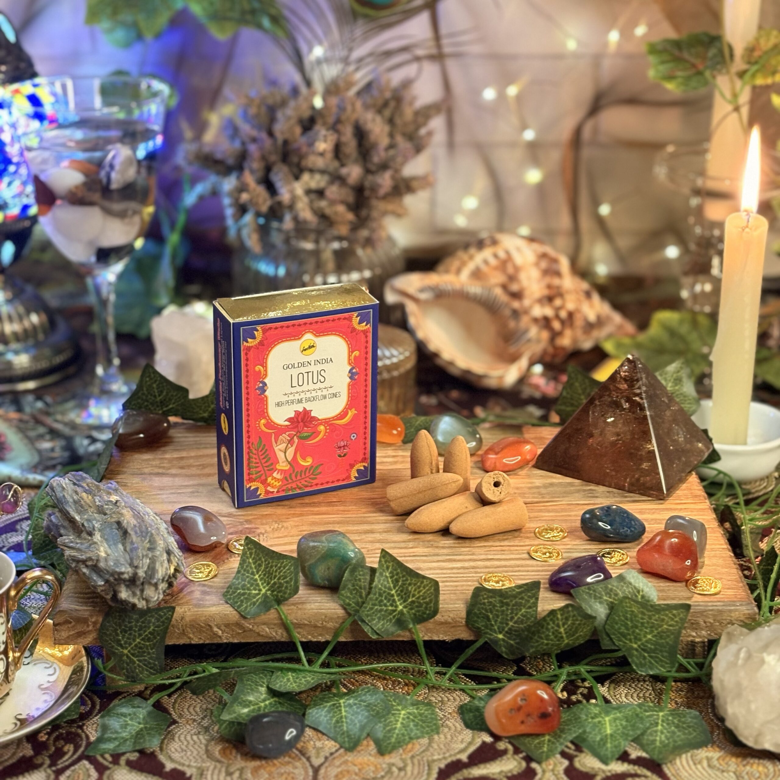 O incenso Cone Indian Heritage Lótus é produzido com a tradicional mistura indiana de ervas e resinas, trazendo uma fragrância floral suave e espiritualizada.
