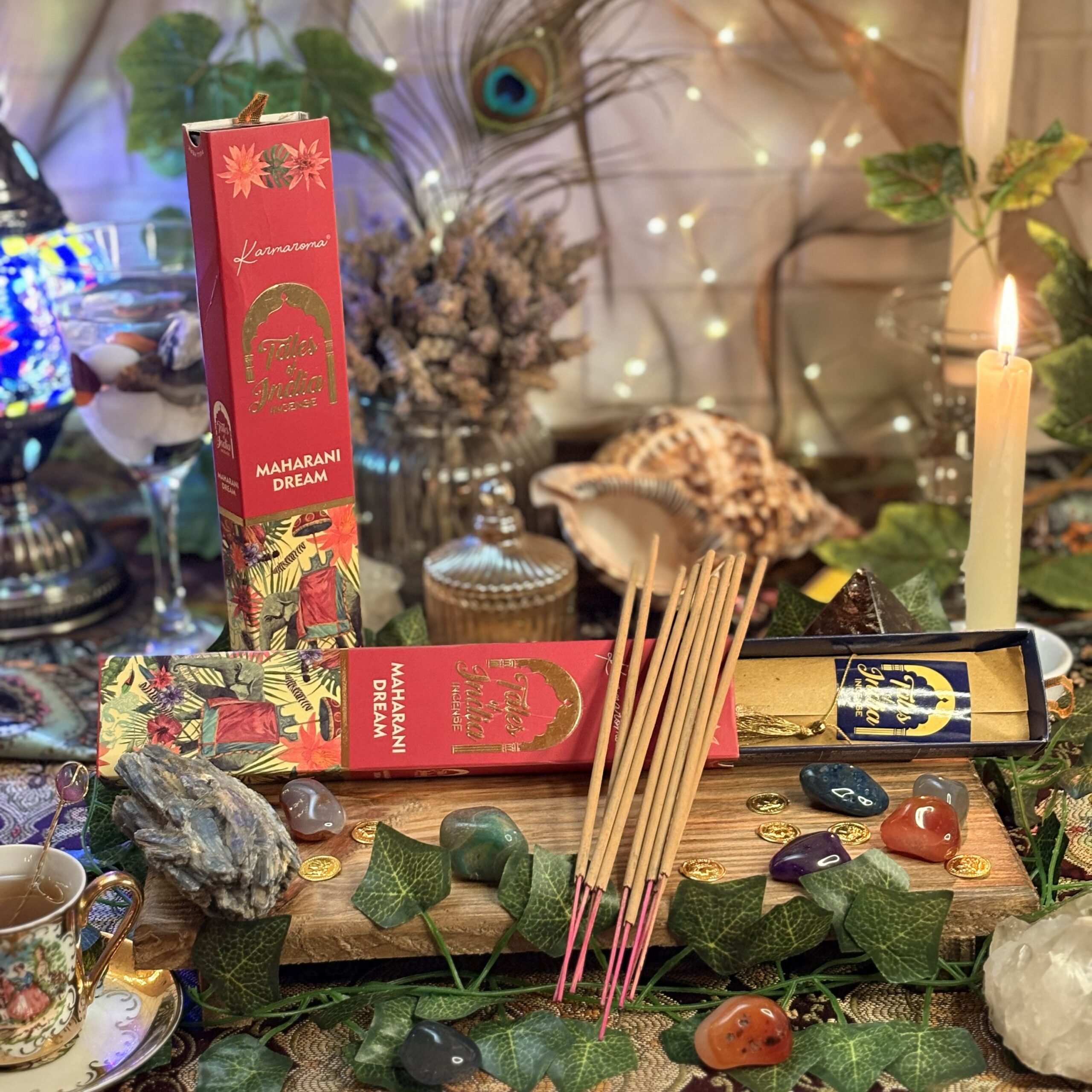 O incenso Maharani Dream, da linha Tales of India, é produzido artesanalmente na Índia, trazendo uma fragrância sofisticada e envolvente inspirada na elegância dos palácios indianos.