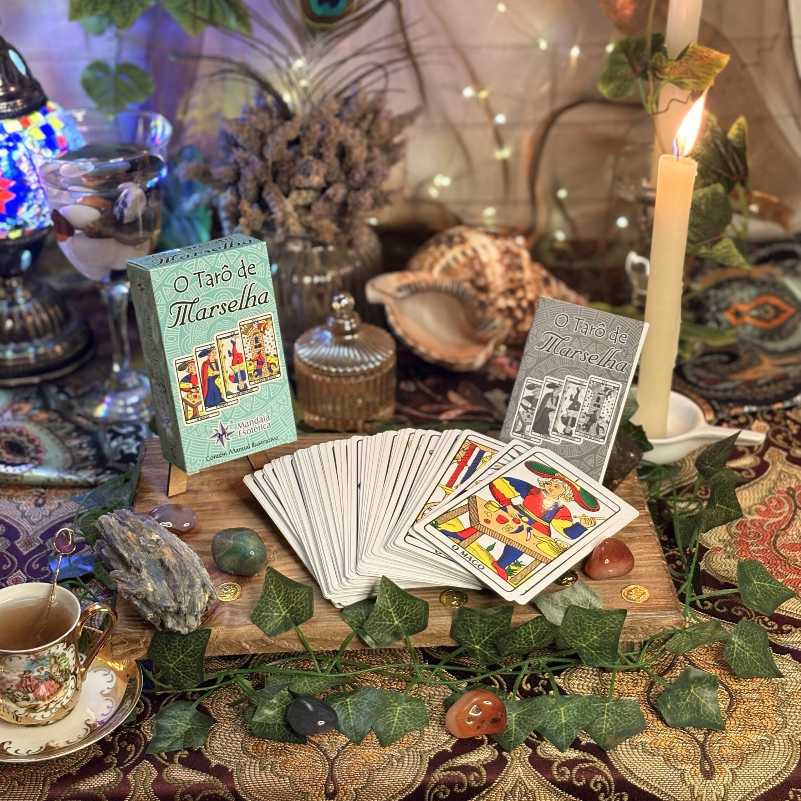 O Tarô de Marselha, da Editora Mandala Esotérica, é um dos baralhos mais tradicionais do mundo, composto por 78 cartas que representam os arquétipos clássicos do tarô.